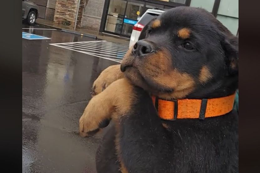 Korisnica TikToka @rayasroyals.21, uzgajivačica rotvajlera, nedavno je podelila snimak svog šteneta koje je raznežilo milione gledalaca. Video prikazuje vlasnicu kako stoji na kiši i drži malog rotvajlera koje maše šapama kao da pliva!