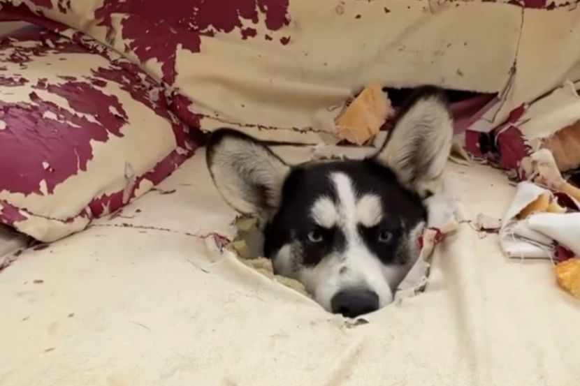 Ipak, ne možeš uvek biti siguran da znaš da uradiš ono čega se latiš, pa su haski i njegov bratić uspeli da naprave dovoljno velike rupe u ovom komadu nameštaja kako bi mogli da se "izvade" kad dobiju po njuškama.