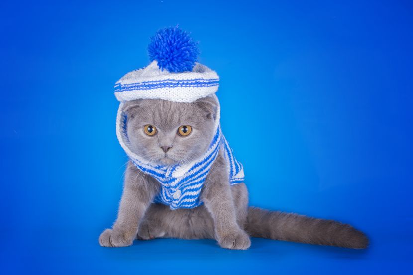 Mače baš uživa u rashlađivanju, a dodatnu zaštitu pruža mu šarena i "po meri" napravljena kapica za zaštitu od sunca, sa prorezima za uši.