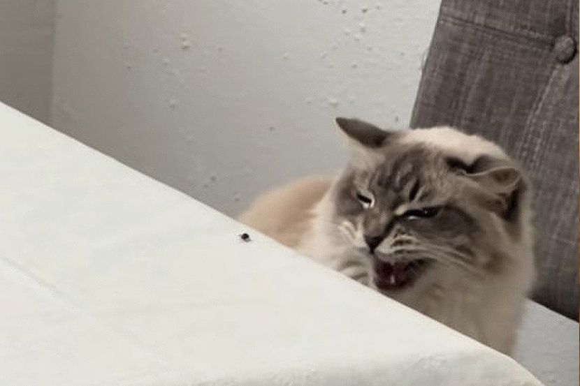 Mačke nisu uvek raspoložene za goste, pogotovo nezvane i neočekivane, a neke on njih čak pokazuju prezir i gađenje prema došljacima. Tako je korisnica Tiktoka rattkidd4 objavila snimak svoje mačke koja je pobesnela nakon što je stolom prošetala muva.