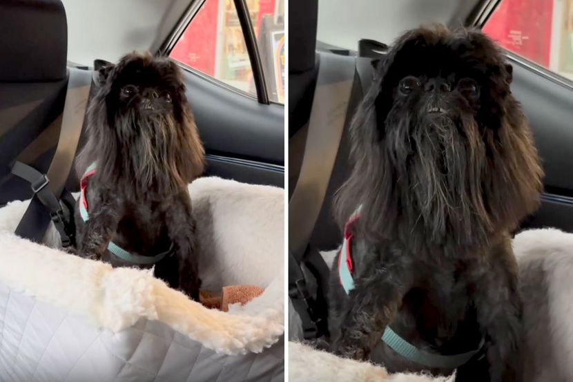 Mali pas crne dlake, rase belgijski grifon, vratio se sa ulepšavanja kod grumera koji očigledno ne zna neke stvari, ili je rešio da zabavi i nasmeje vlasnike.