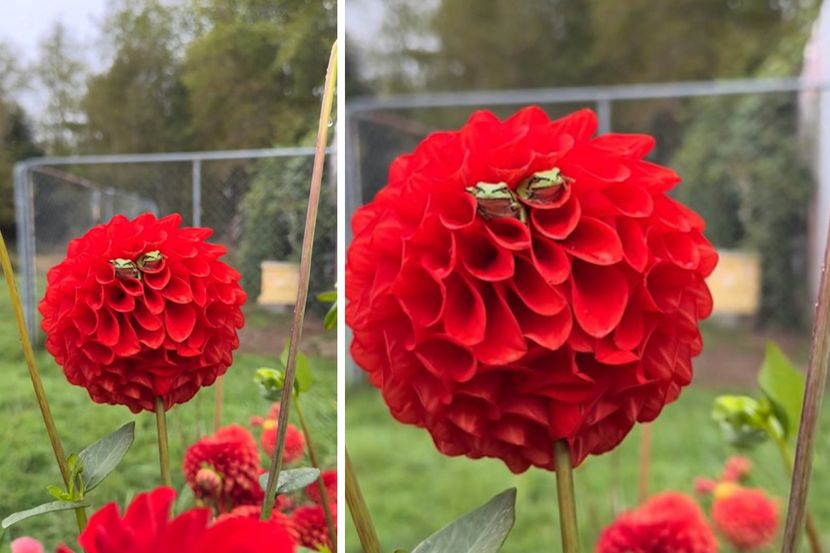 Ukoliko uživate u cveću i bavite se baštovanstvom, treba da znate kakve životinje možete privući u svoje dvorište sadnjom određenih vrsta biljaka. Jedna žena obožava dalije: njena bašta prepuna je ovog cveća, pa se prijatno iznenadila kad su se u njenom cveću našli neočekivani kućni ljubimci, dve preslatke male šumske žabe ušuškane u jednom od njenih prelepih cvetova, kao da su na medenom mesecu.