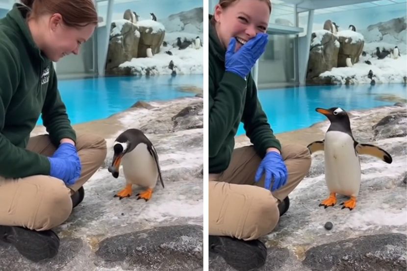 Morate pogledati snimak da biste poverovali: Pingvin doneo kamenčić čuvarki i izjavio joj ljubav