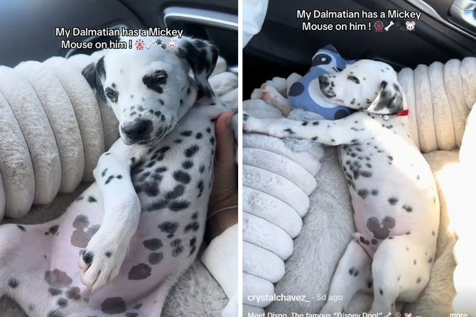 Vlasnica udomljenog dalmatinca oduševila je mreže snimkom svog štenca na čijem telu postoji nesvakidašnja šara! Kristal Čavez @crystalchavez_ podelila je na TikTok-u snimak na kome se vidi štene dalmatinca po imenu Disno kako se izležava u automobilu. Dok pas drema, kamera zumira njegov stomak i otkriva tri pege koje su spojene tako da podsećaju na okruglu glavu i uši kakve ima Miki Maus, po čemu je Disno i dobio ime. Video je brzinom munje eksplodirao na mreži, zaradivši preko 1,4 miliona pregleda i više od 284.000 lajkova.